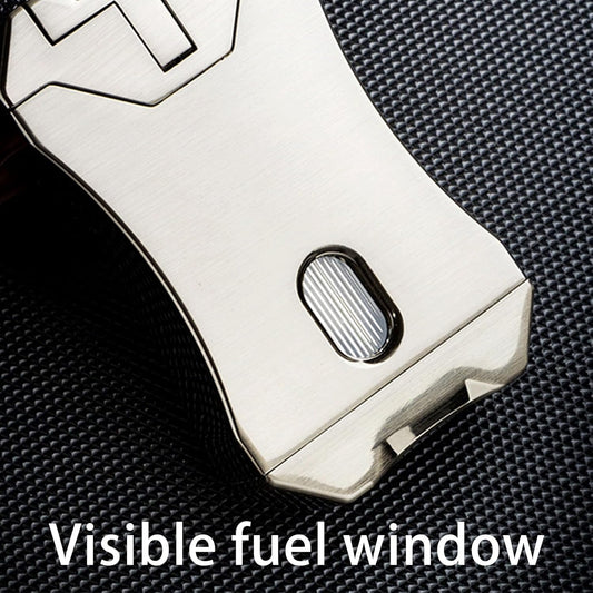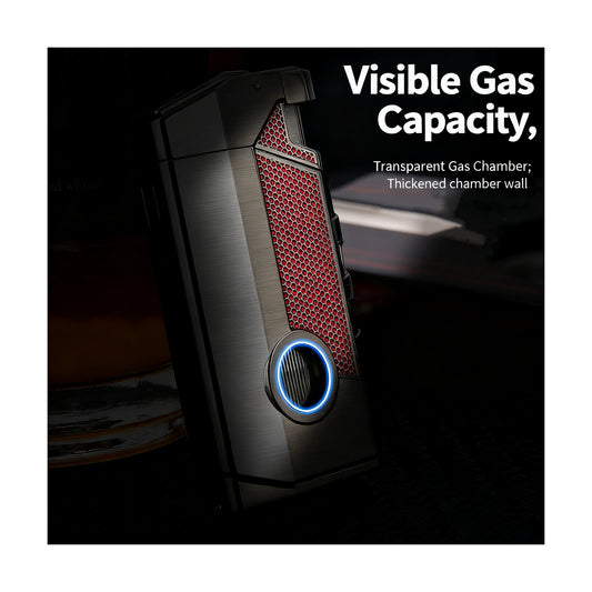 Honest Windproof Four-Jet Flame Lighter, Pure Metal, Butane Refillable, Multi-Function, with Viewing Window, Gift