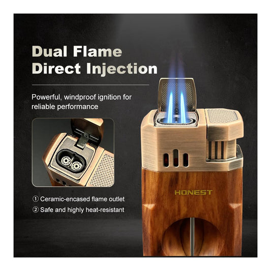 HONEST Refillable Torch Lighter - Dual Jet Flame, Perfect for Cocktails, Hookah & More