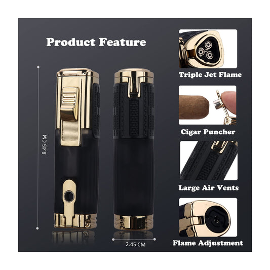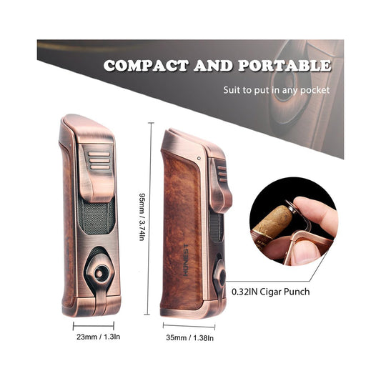Honest Triple Jet Torch Lighter with Punch Rest Holder, Windproof Butane Lighter Refillable - Butane Not Included,Box Included