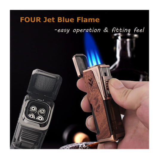 Honest Quadruple Jet Flame Torch Lighter - Refillable Butane Lighter with Punch,in Gift Box