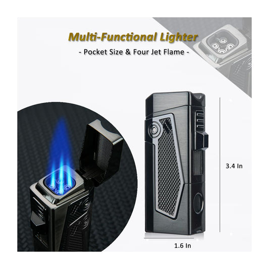 Quadruple Jet Flame Metal Torch Lighter – Refillable Butane Lighter for Men, Perfect Gadgets and Gift Ideas