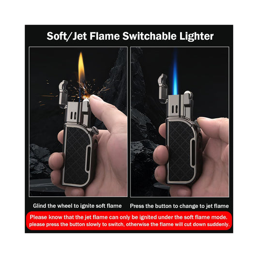 Honest Jet Torch Lighter, Soft/Jet Flame Switchable Lighters, Butane Refillable Lighter with Foldable Punch and Adjustable Flame Dial, Cool Lighters for Men/Husband (Fuel not Included)