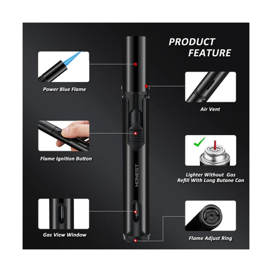 HONEST Refillable Butane Torch Lighter – Adjustable Jet Flame Pen Torch for Grilling, BBQ, Candles, and Camping