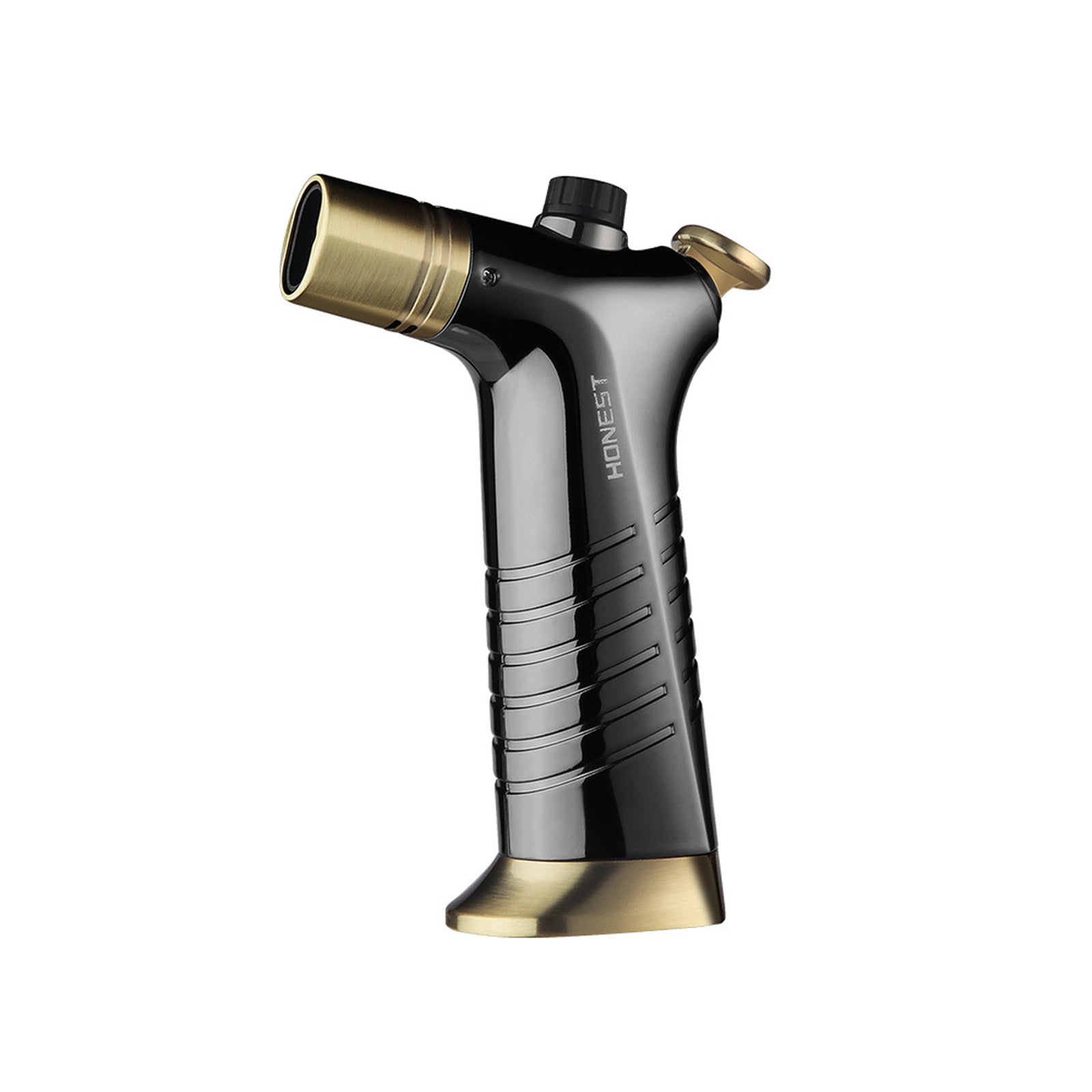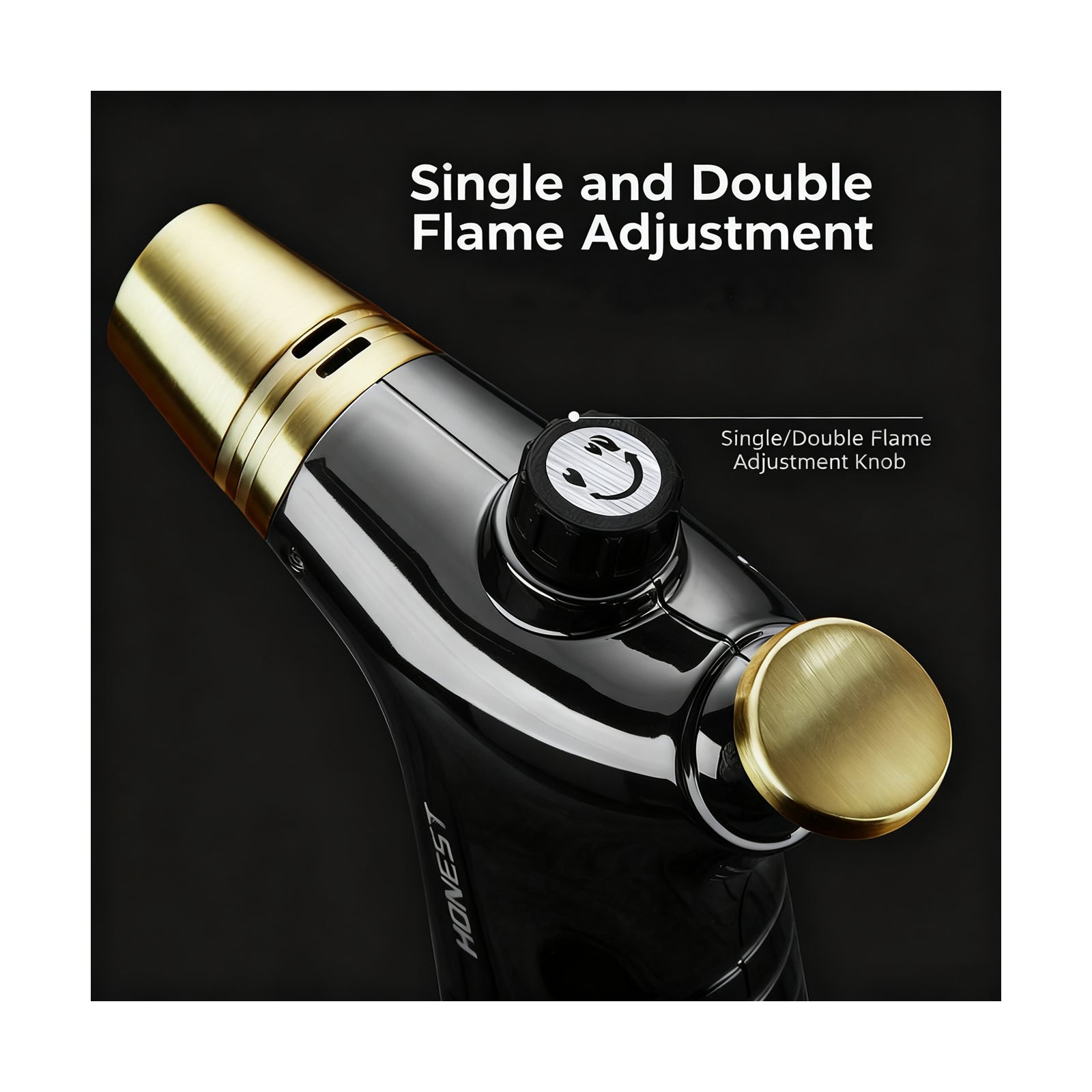 Honest Blue flame direct-into-fire lighter, metal nozzle is safe and durable, jet-type windproof double flame lighter, adjustable flame, rechargeable butane, easy to carry, gift for men
