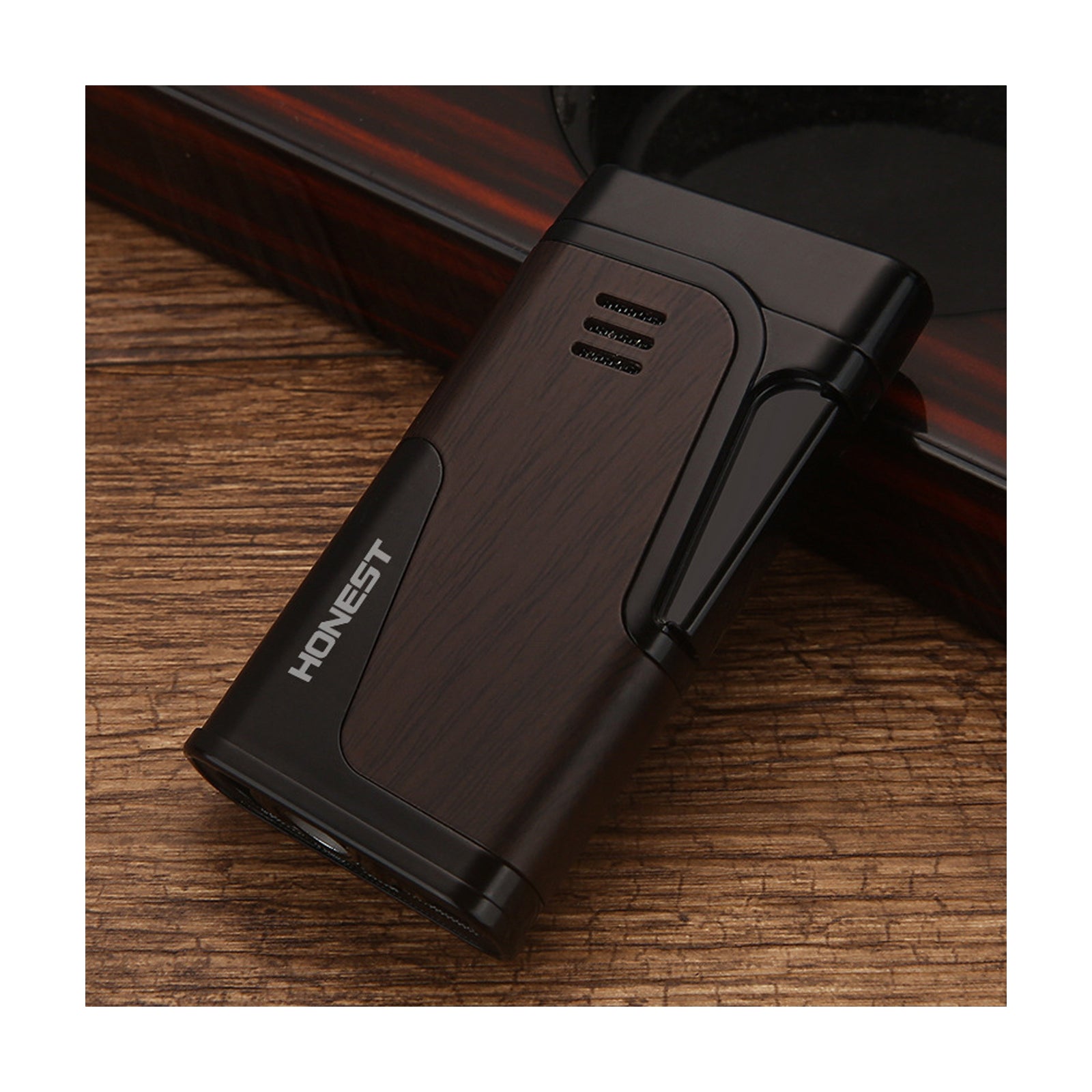 HONEST Genuine Windproof Refillable Butane Lighter Dual Jet Flame Metal Design Gift Item