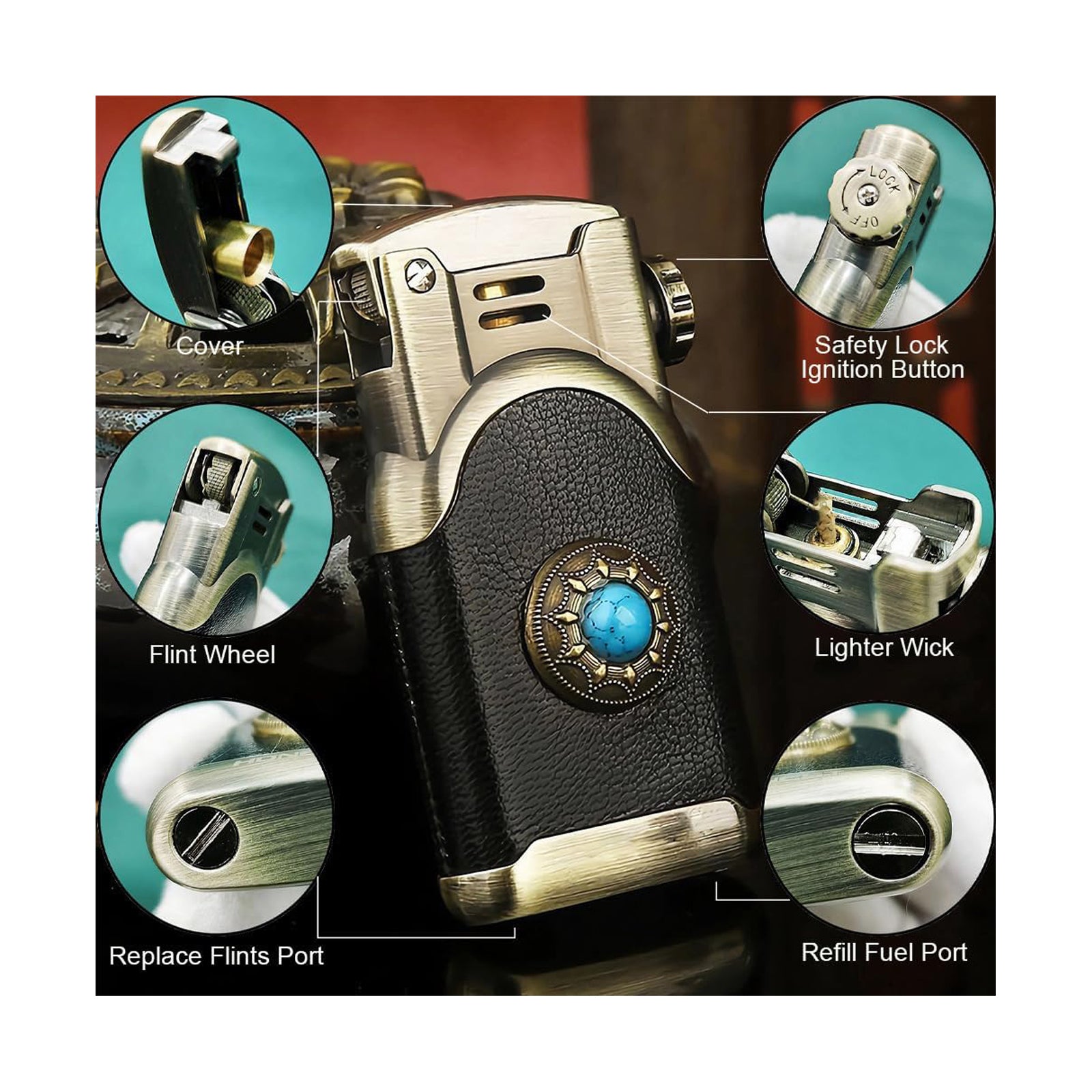 Honest Leather Lighter Soft Flame Antique Style Refillable Vintage Candle Lighters for Collection Gift