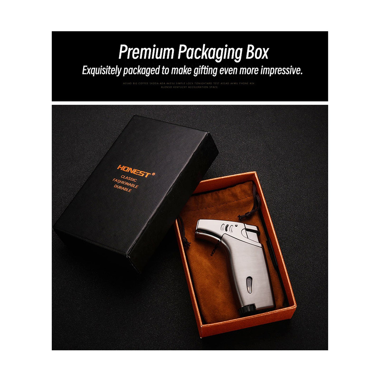 Honest Outdoor Angled Jet Torch Lighter Metal Refillable Windproof Flame for Camping Incense Mosquito Coil and Moxa Heating