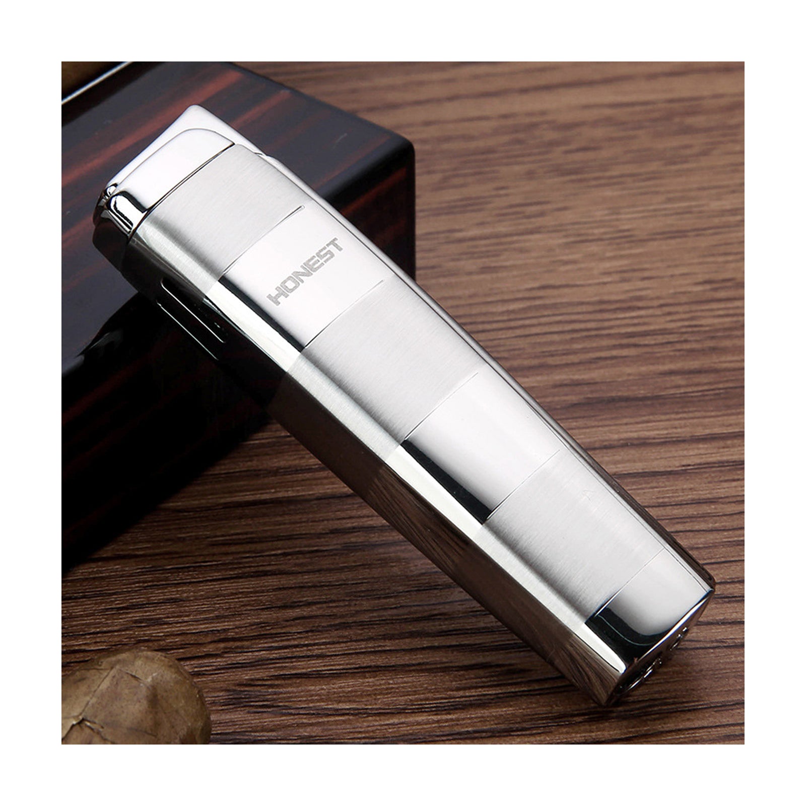 Honest Portable Blue Straight Flame Lighter Windproof Butane Lighter Jet Single Flame Lighter Convenient and Compact Rechargeable Adjustable Flame Suitable for Men's Gifts