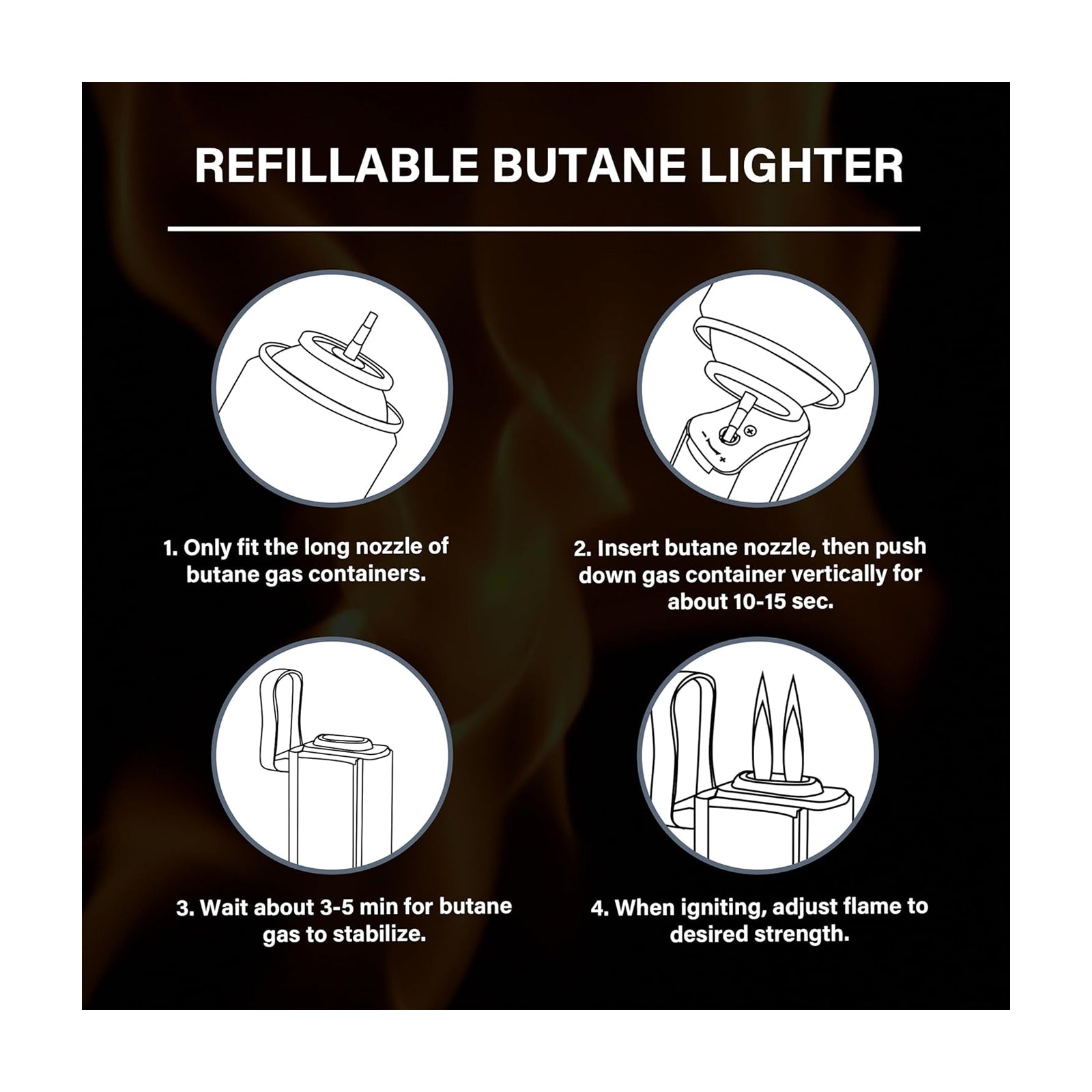 Honest Retro Triple Flame Butane Lighter, Refillable, Windproof, Adjustable Flame, Built-in Cutter, Detachable Poker