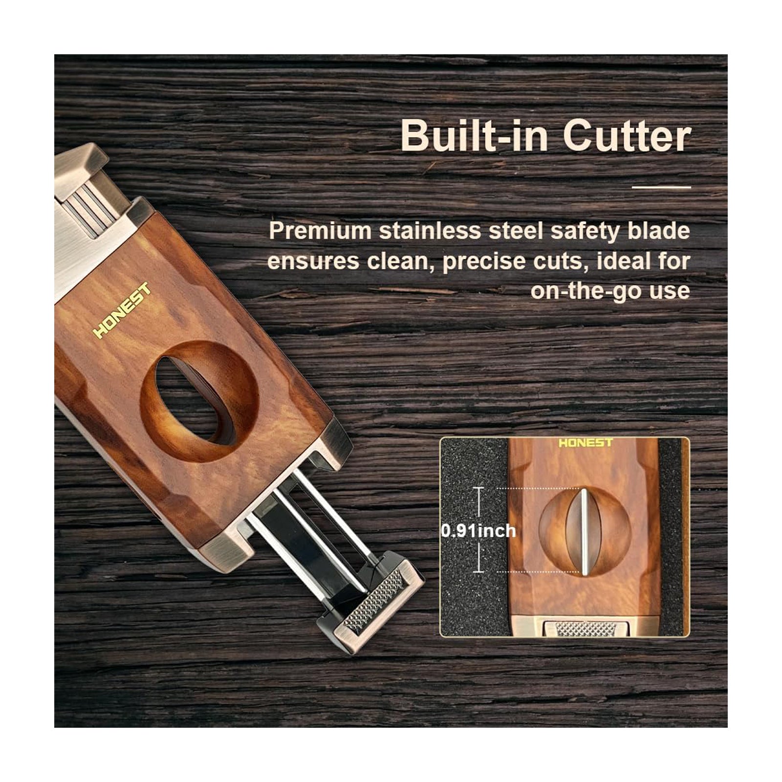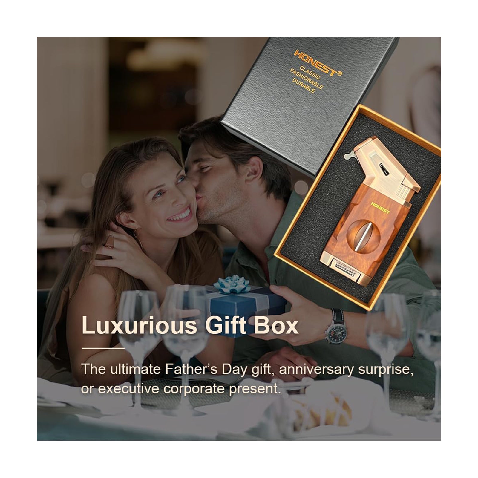 Honest Torch Lighter with V Cutter,Refillable Windproof Adjustable Jet Flame with Fuel Window Butane Torch Lighter,Gifts for Men (Butane not Include)