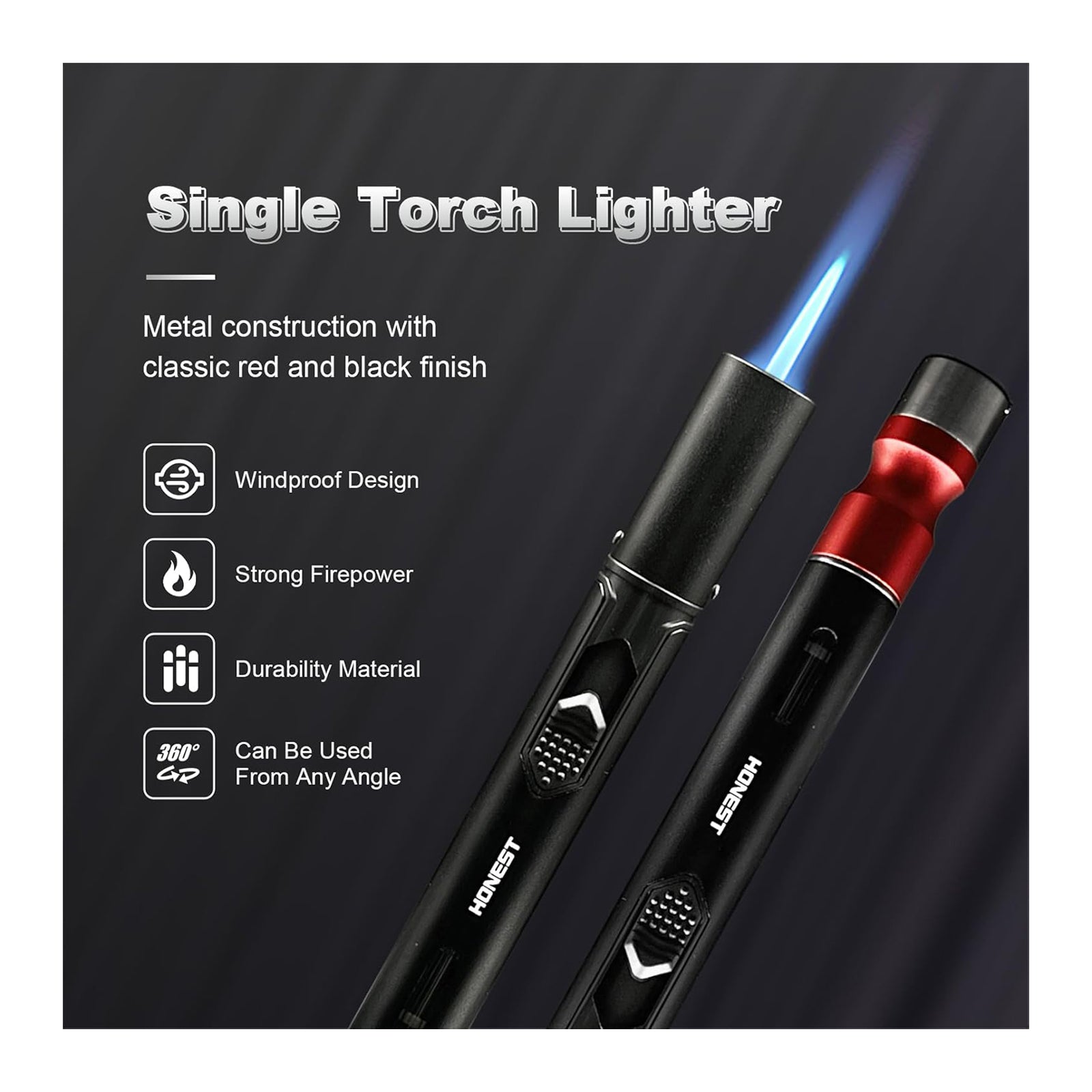 Honest Torch Lighters,5 in 1 Refillable Butane Torch Lighters,Butane Not Included, Windproof Adjustable Jet Flame Pen Shape Lighter with Cutter Punch,Holder,Draw Tool Gas Lighter Accessories Kit in Gift Box