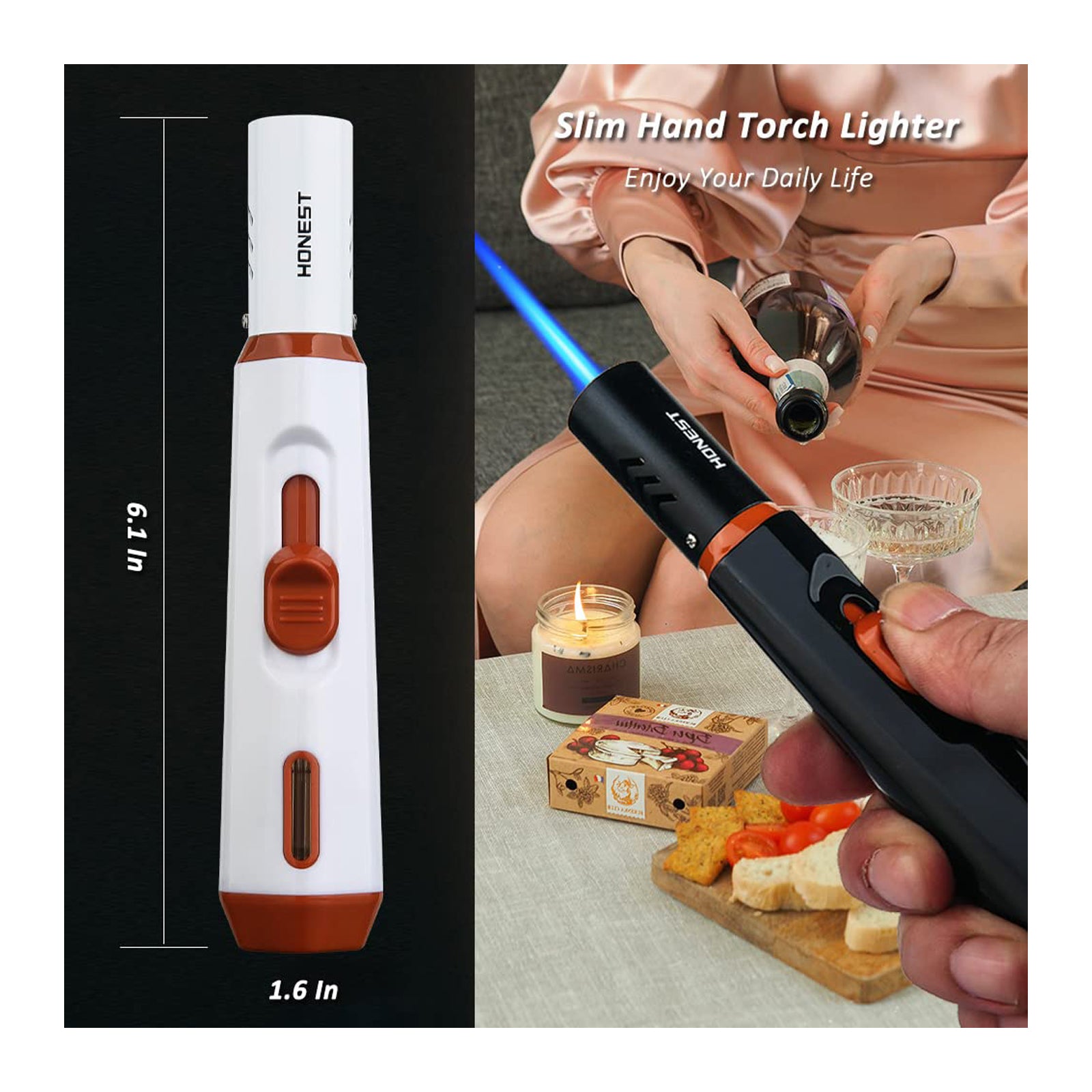 Refillable Butane Torch Lighter – Single Jet Flame for Candles, Grills, BBQ, and Camping (Gas Not Included)